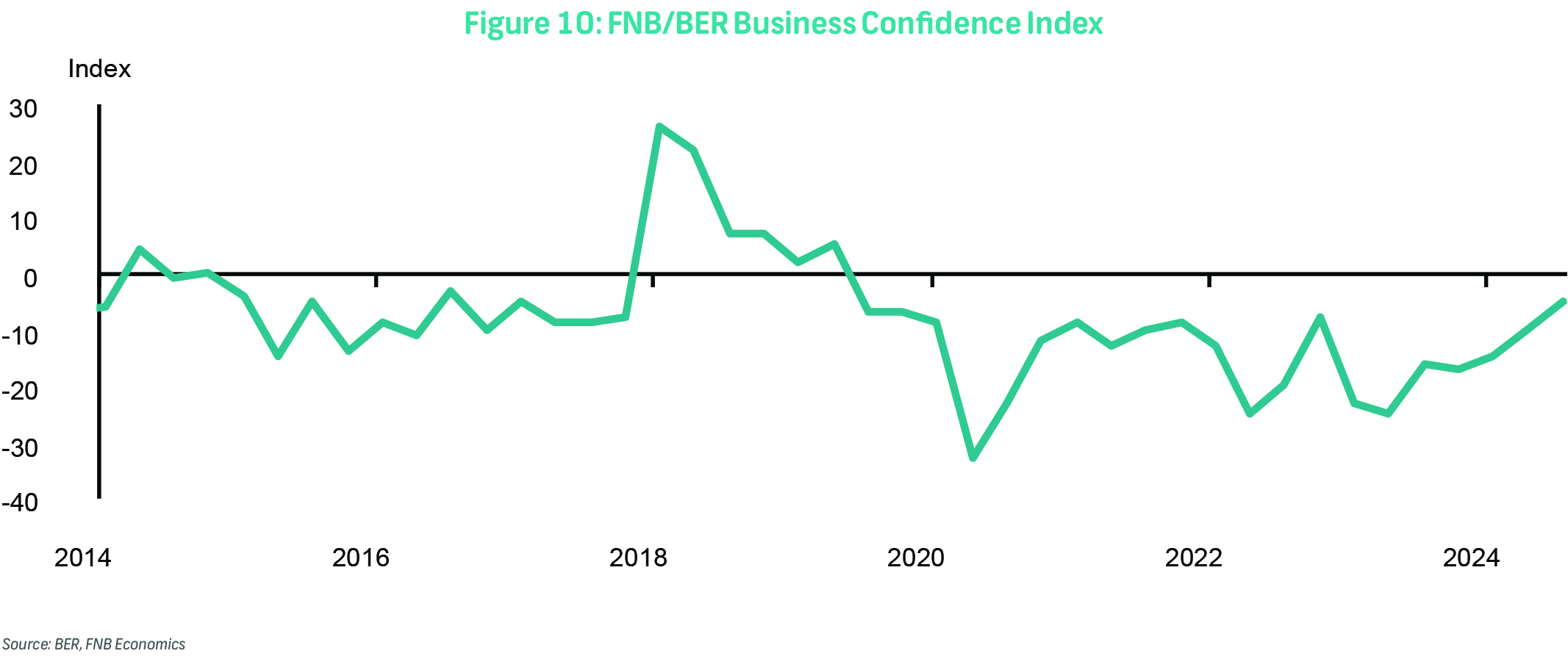 On Wednesday, the FNB/BER Consumer Confidence Index (CCI) will be released. In 3Q24, the CCI continued to improve, rising by seven index points to -5, marking the highest level in five years. The positive momentum was supported by factors such as the formation of a Government of National Unity, the absence of load-shedding, a stronger rand, lower inflation, and the implementation of the two-pot retirement system. Across income groups, high-income households saw the most significant improvement, followed by middle-income households. By contrast, sentiment among lower-income households backpedalled in 3Q24.