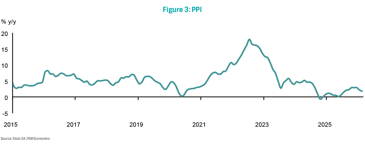 Also on Tuesday, the Quarterly Employment Statistics (QES) for 4Q25 will be published. In 3Q25, the QES showed that 29 000 (0.3% q/q) formal jobs were created. However, employment was down by 0.7% y/y (-79 000), with mostly full-time jobs lost. Job creation remains concentrated in public services and mining, while manufacturing and construction continue to shed jobs, and earnings growth is still largely driven by service-sector activity despite subdued hiring conditions. Gross earnings were up 3.2% y/y, still highlighting a faster recovery than employment.