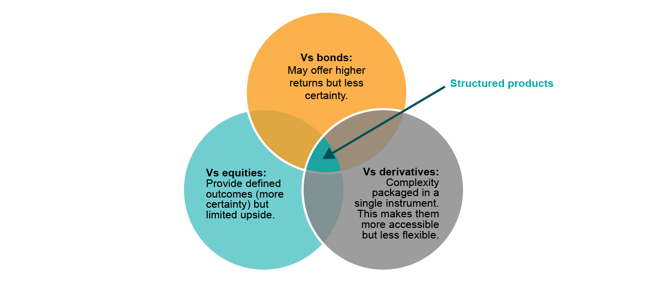 Structured notes occupy a hybrid position between asset classes, making them suitable for specific objectives rather than as replacements for core portfolio assets: