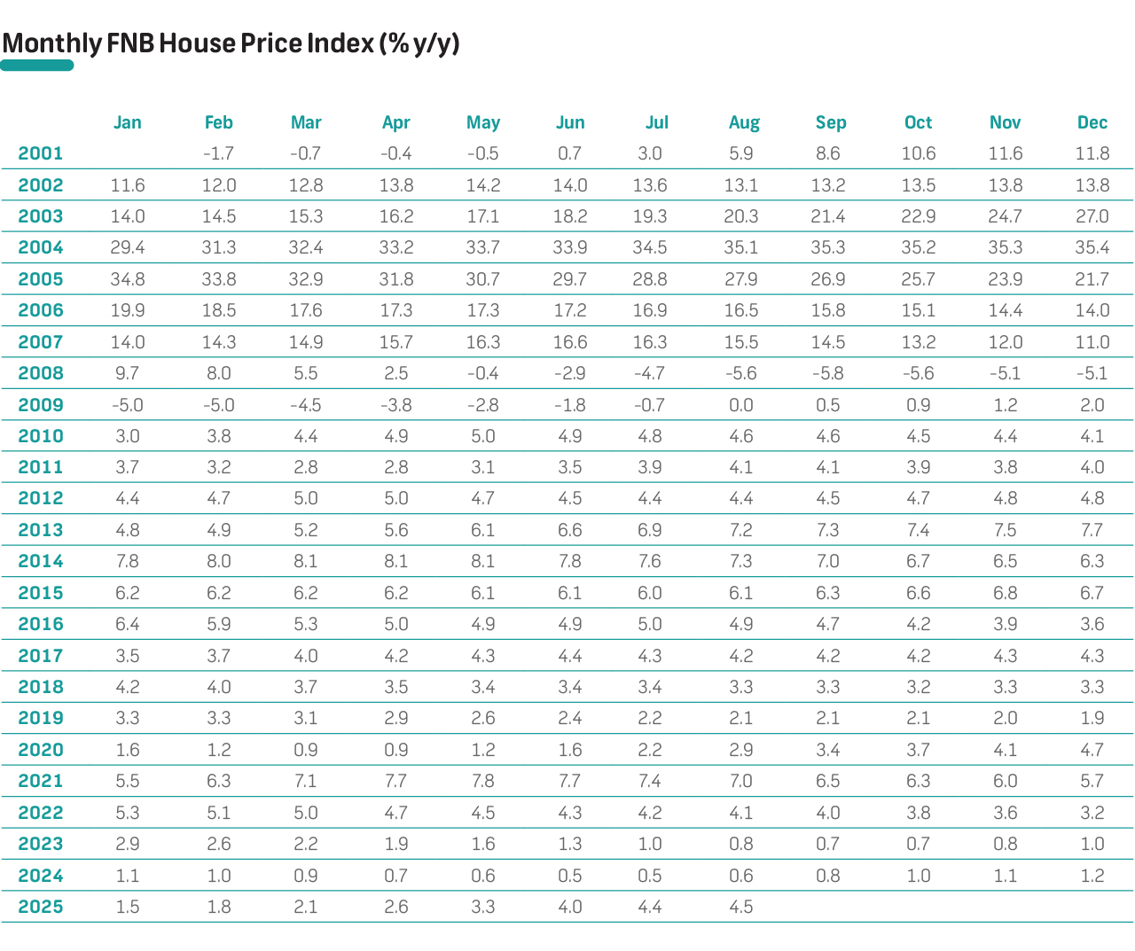 The index is compiled from FNB's own valuations database, thus based on the residential properties financed by FNB.